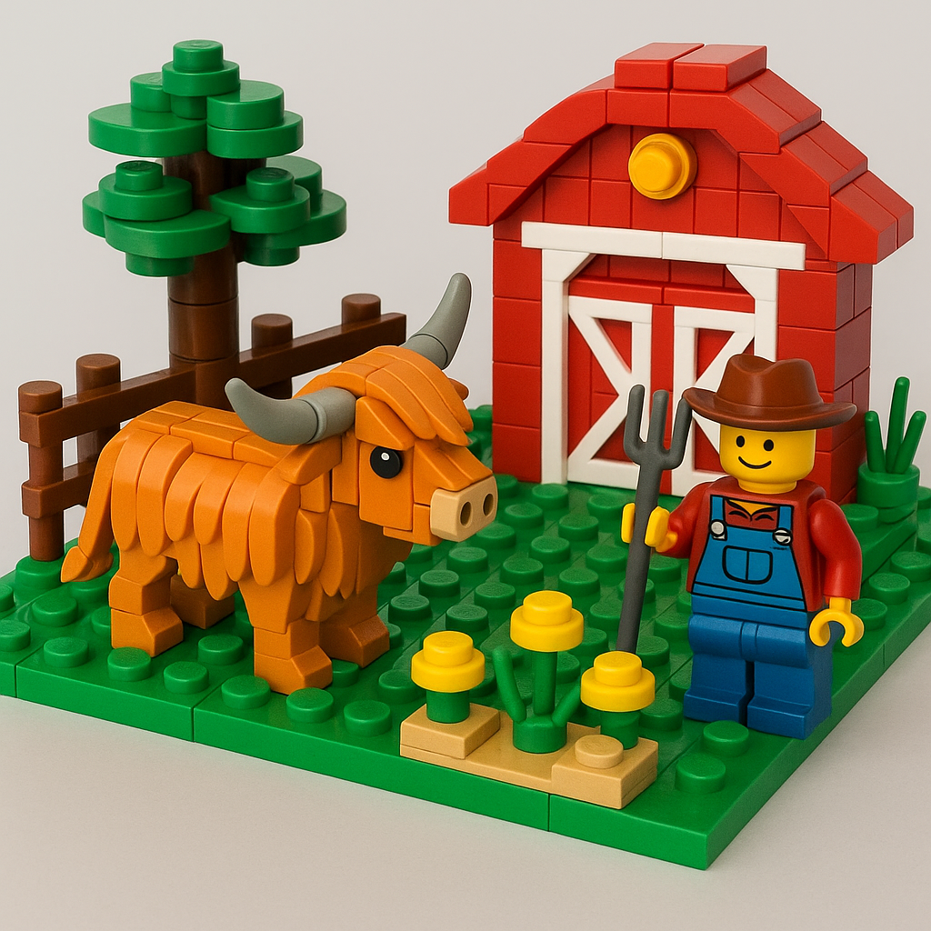 Bring the charm of the countryside to life with the Highland Cow Farmyard Building Block Set — a delightful farming scene inspired by the iconic shaggy Highland cattle of Scotland!